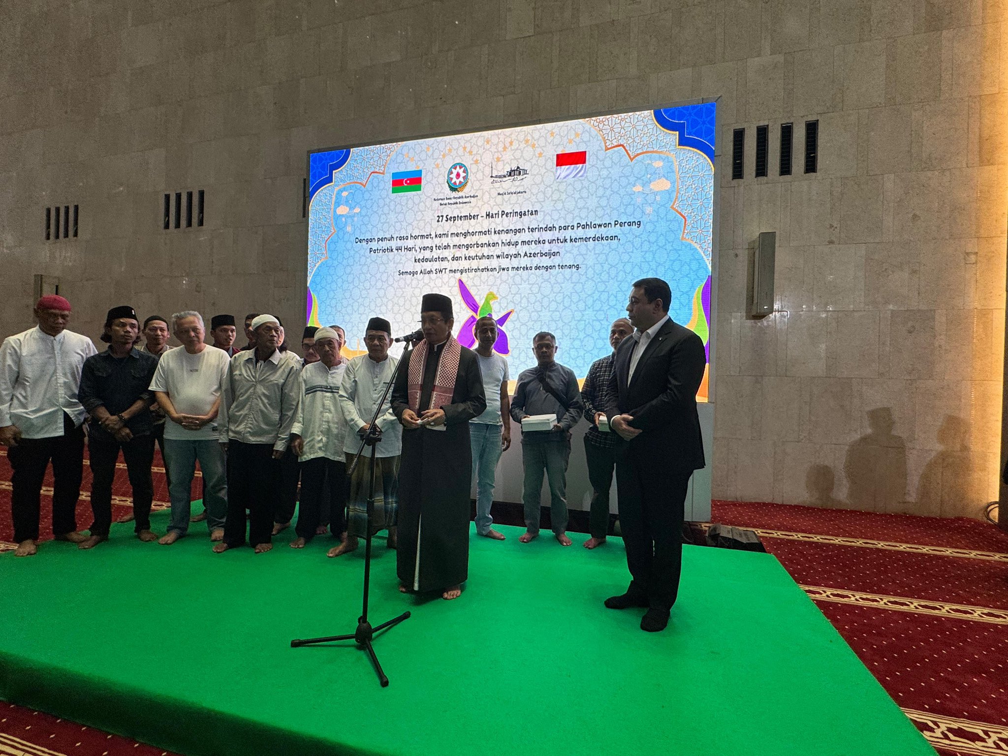 27 sentyabr Anım Günü ilə əlaqədar Azərbaycan Respublikasının İndoneziya Respublikasındakı səfirliyi tərəfindən Cakarta şəhərində yerləşən İstiqlal məscidinin rəhbərliyinin dəstəyi ilə Cümə namazı mərasimi keçirilmişdir. Məscidin imamı tərəfindən 44 günlük Vətən Müharibəsi şəhidlərinin xatirəsi yad edilmiş və ruhlarına dualar oxunmuşdur. Namaz mərasimində İndoneziyanın dini işlər üzrə nazir Nasruddin Umar da iştirak etmişdir.